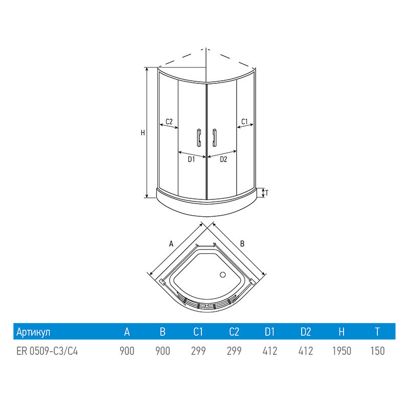 Душевой уголок Erlit ER0509-C3 (900*900*1950)