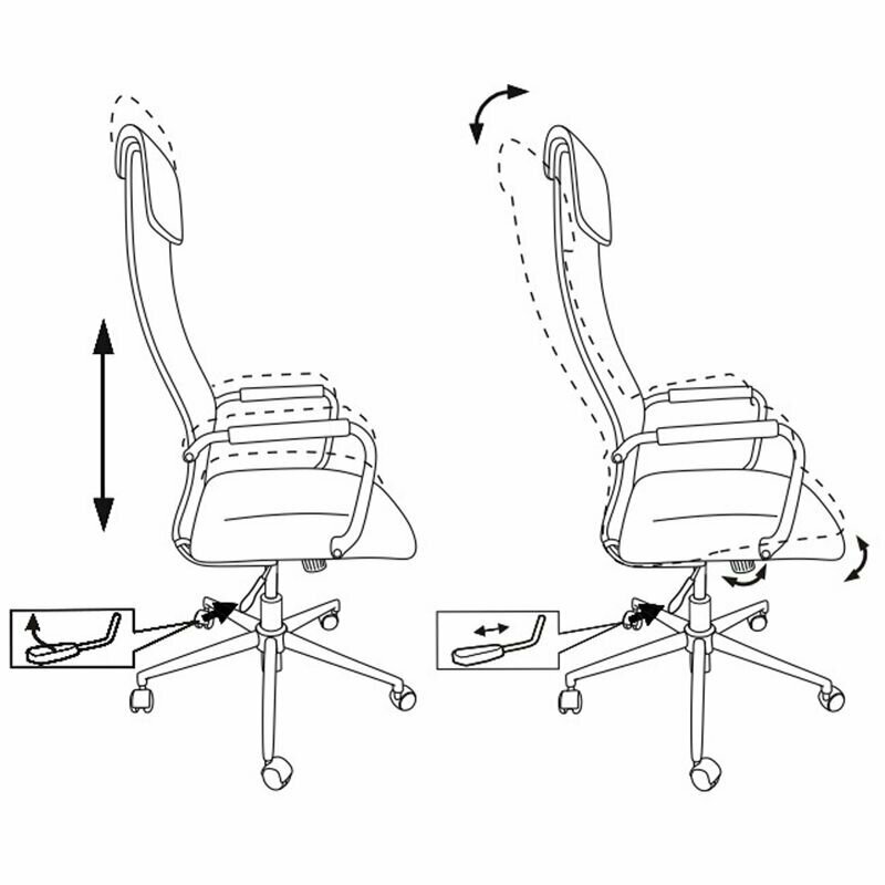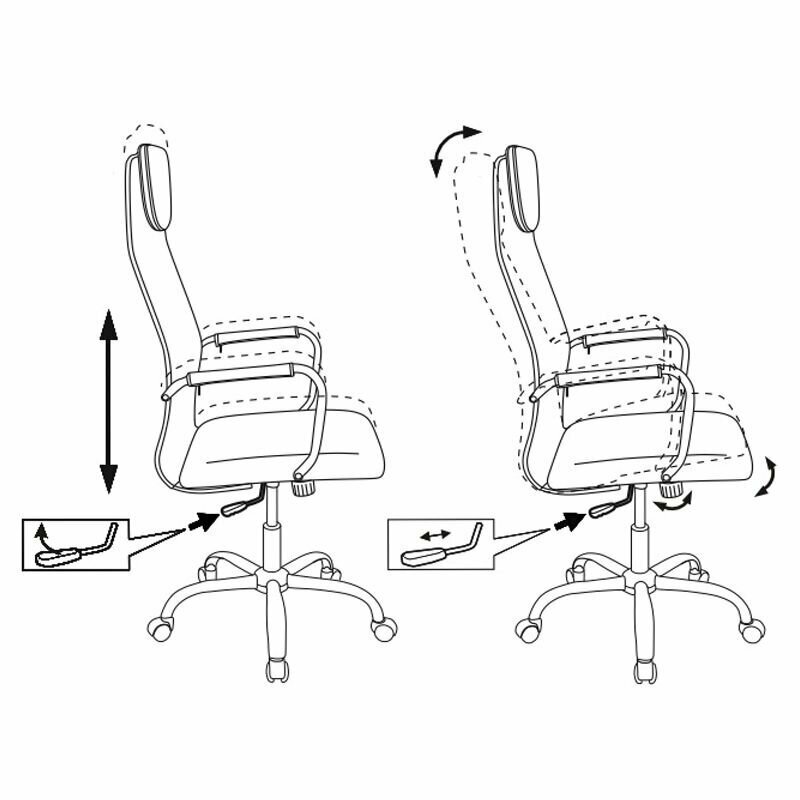Есть стандартный газовый лифт и небольшая регулировка наклона спинки стандартным винтом внизу. Всё. На ручке газового лифта нарисованы какие-то движения влево и вправо, но на практике такие движения сделать невозможно. |