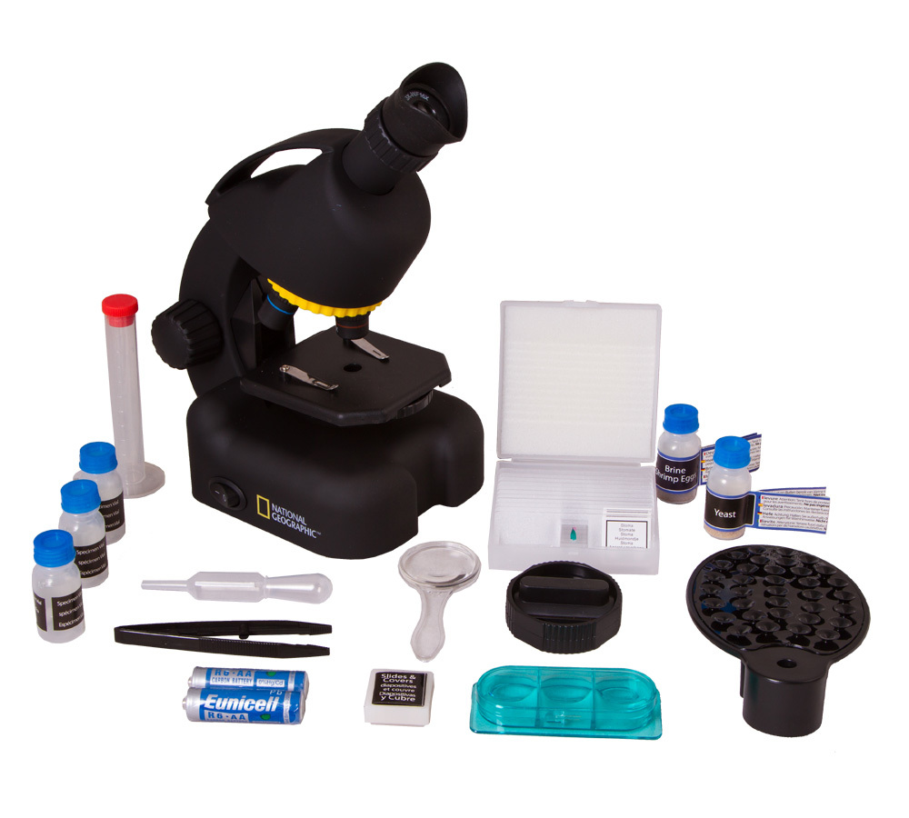Микроскоп BRESSER National Geographic 40-640x, с адаптером для смартфона черный интересное: