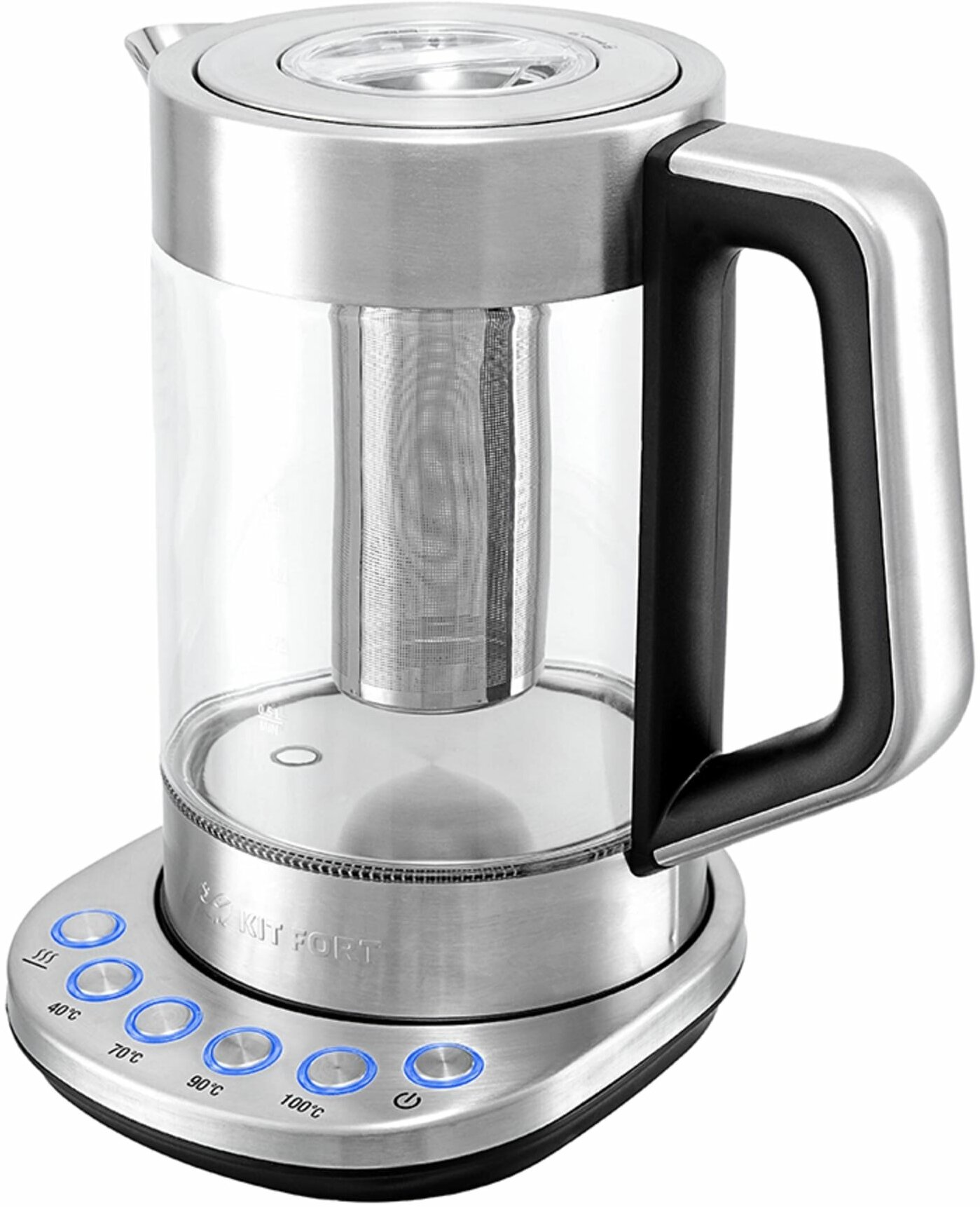 Чайник KITFORT КТ-622, 1,7 л, 2200 Вт, закрытый нагревательный элемент, терморегулятор, заварник, стекло, серебро - 1 шт.