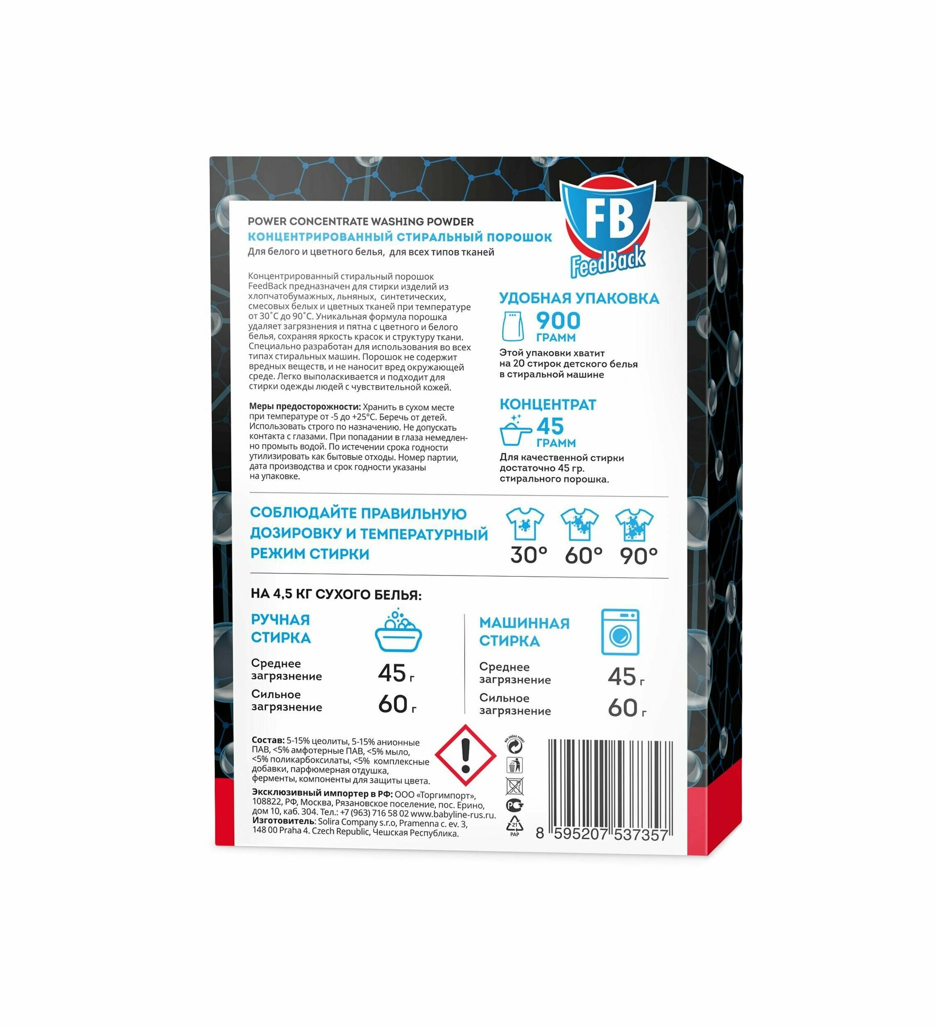 FEEDBACK Концентрированный стир. порошок 20 стирок Power Concentrate Washing Powder,б/фосф, 900 г