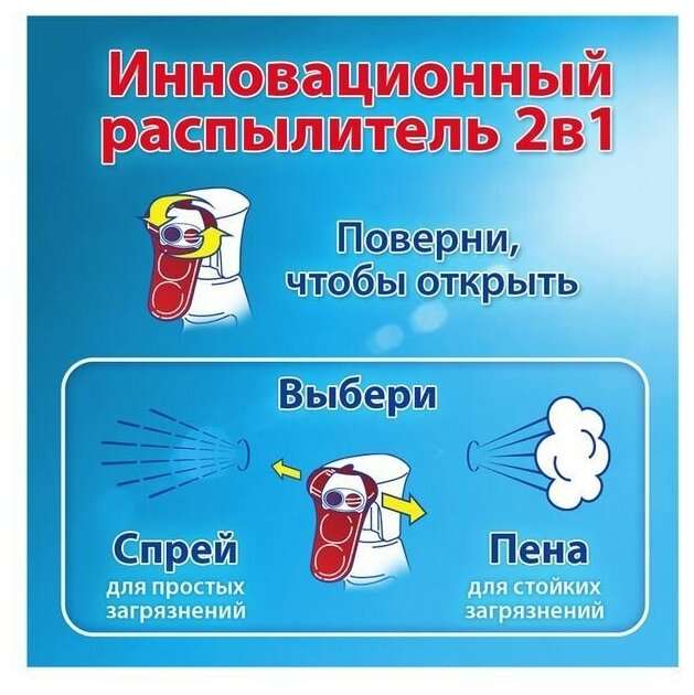 Хорошее средство, не оставляет разводов. Удобное переключение распылителя в два положения - это обычное распыление и Пена через встроенную мембрану. Нет красителей которые остаются после высыхания средства, как у дешевых аналогов. |