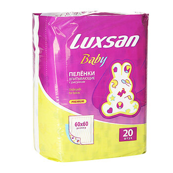 Пеленки одноразовые детские Luxsan Baby PREMIUM 60х60, 20 шт.