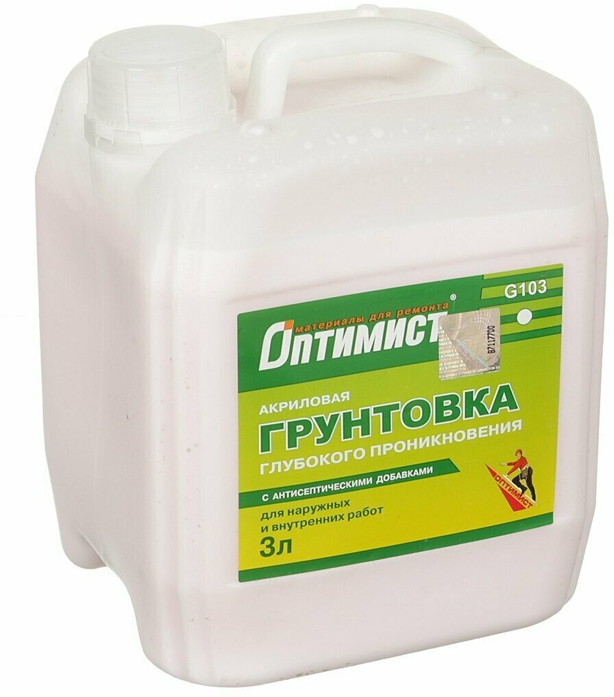 Оптимист Грунтовка глубокого проникновения акриловая G103 для наружных и внутренних работ 3л OPG012