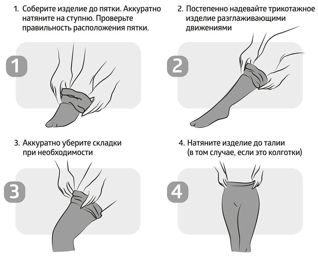 | Отзыв: | На рост 165 и вес 60 брала двойку, сели хорошо. Надевать, конечно, не очень просто, но приноровилась. В целом, можно не бояться их тянуть, они не “лопнут”, как обычные колготки и чулки, но к этому нужно привыкнуть и приноровиться. Хорошо надеваются, если стопу немного детской присыпкой обработать.