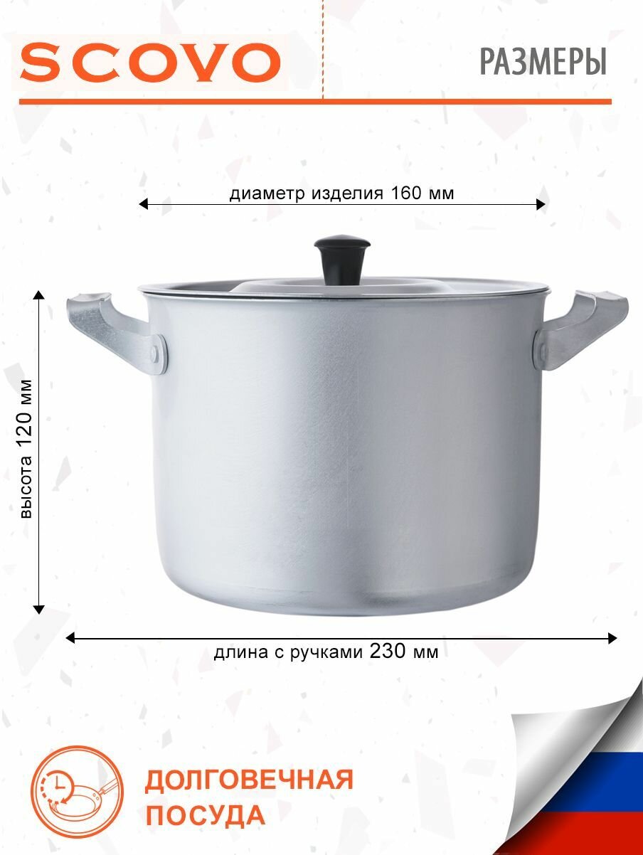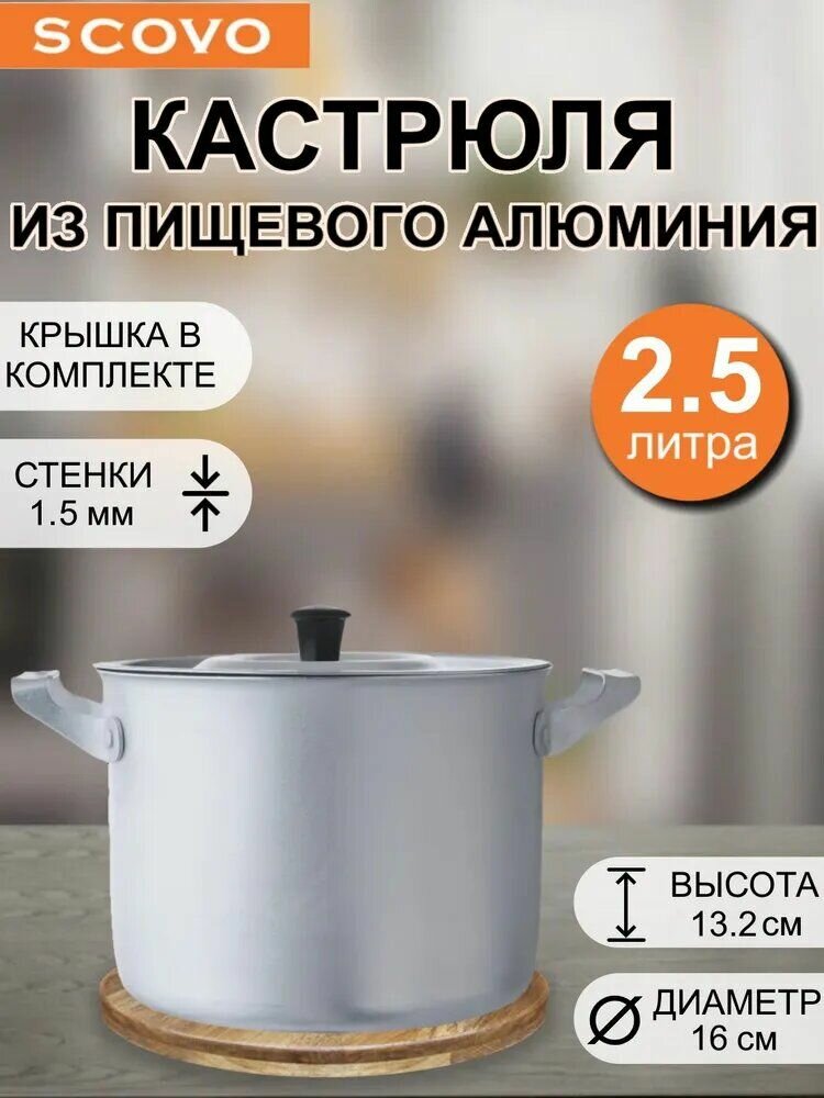 Кастрюля алюминий, 2.5 л, с крышкой, Scovo, МТ-004