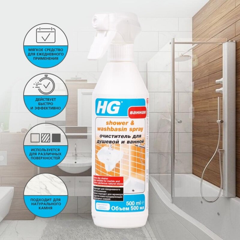 HG Очиститель для душевой и ванной, 0,5 л, HG