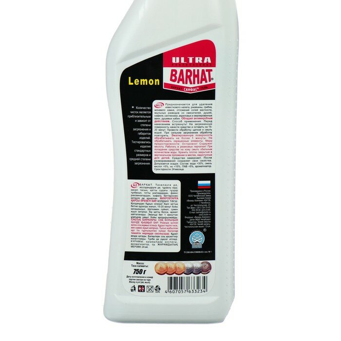 Купить Средство для ухода за туалетом и ванной комнатой ULTRA BARHAT санфас , лимон, гель, 750 г