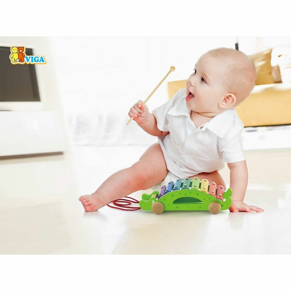 Ксилофон-каталка VIGA "Крокодил", дерево, в коробке