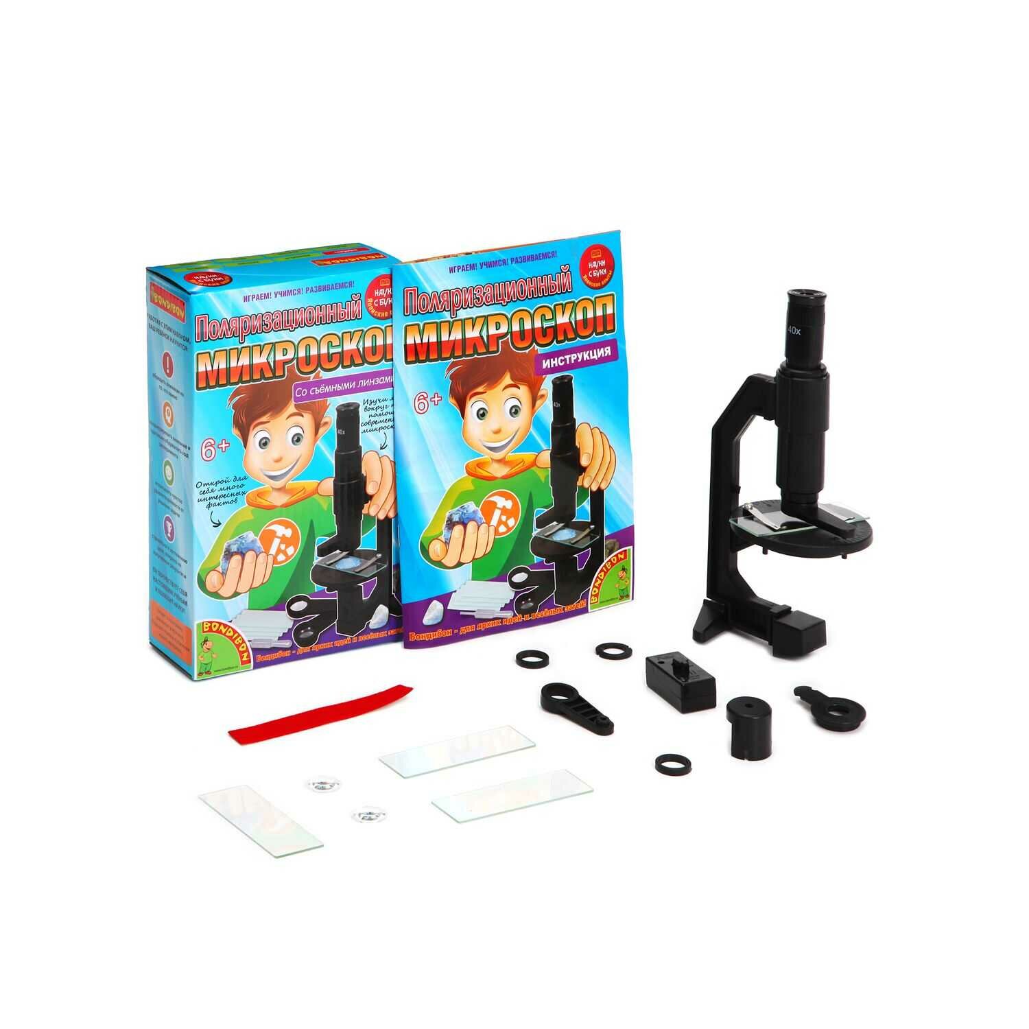 Bondibon Поляризационный микроскоп Японские опыты Науки с Буки со съемными линзами ВВ1188