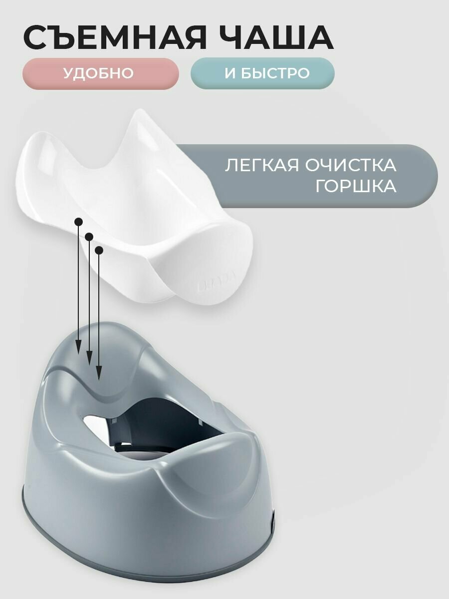 Горшок детский BEABA POT, эргономический горшок для мальчика и девочки со съемной чашей, серый