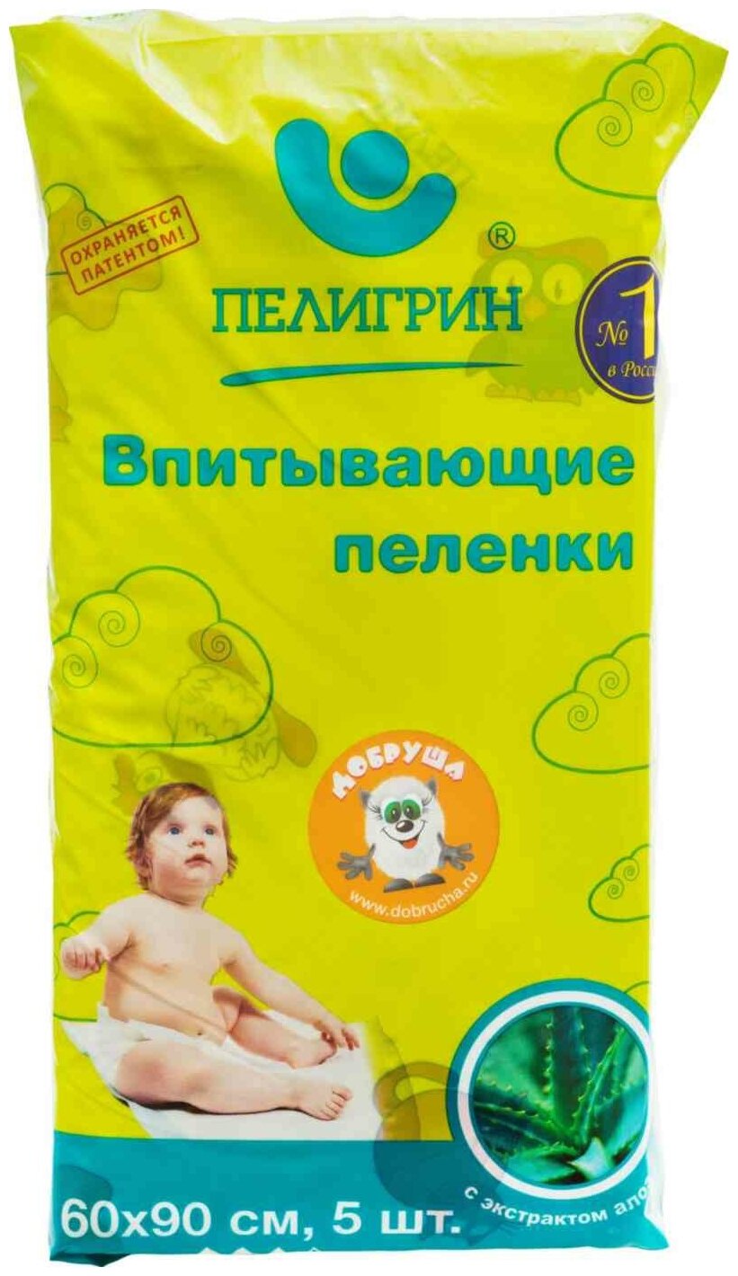 Одноразовая пеленка Пелигрин с экстрактом алоэ 60х90, 5 шт. интересное: