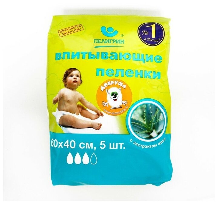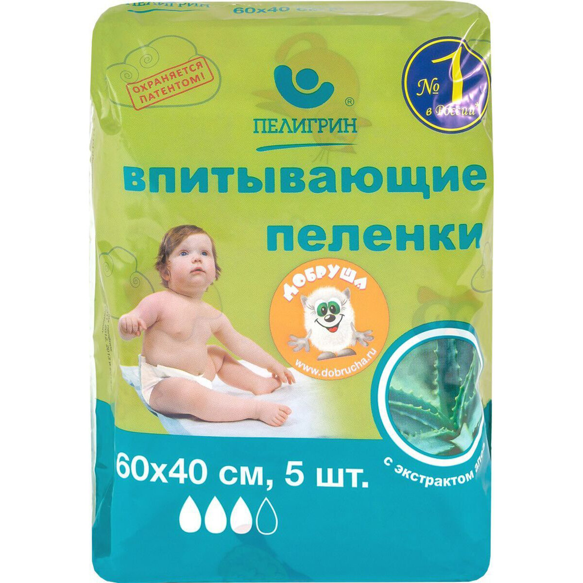 Одноразовая пеленка Пелигрин с экстрактом алоэ 60х40, 5 шт. интересное: