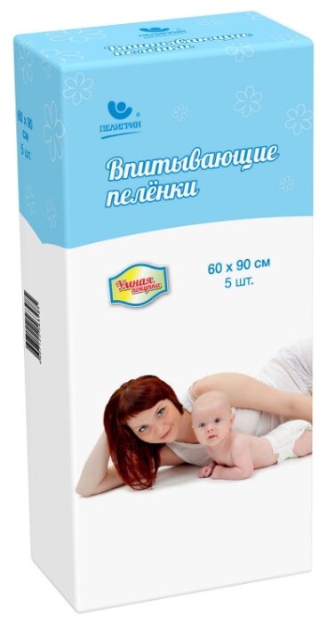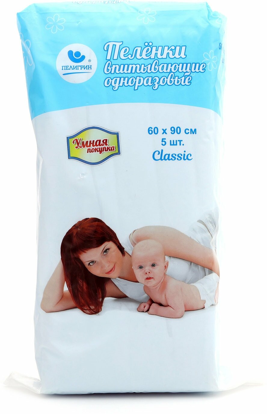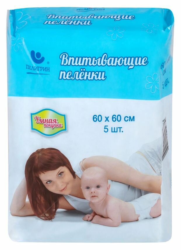 Пелигрин Пеленки впитываюшие 60х90 см , 5 шт. серия "Умная покупка"