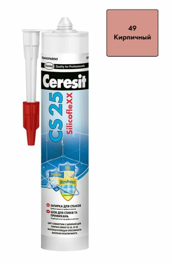 Силиконовая затирка-герметик Церезит CS 25 кирпичный №49, 280 мл