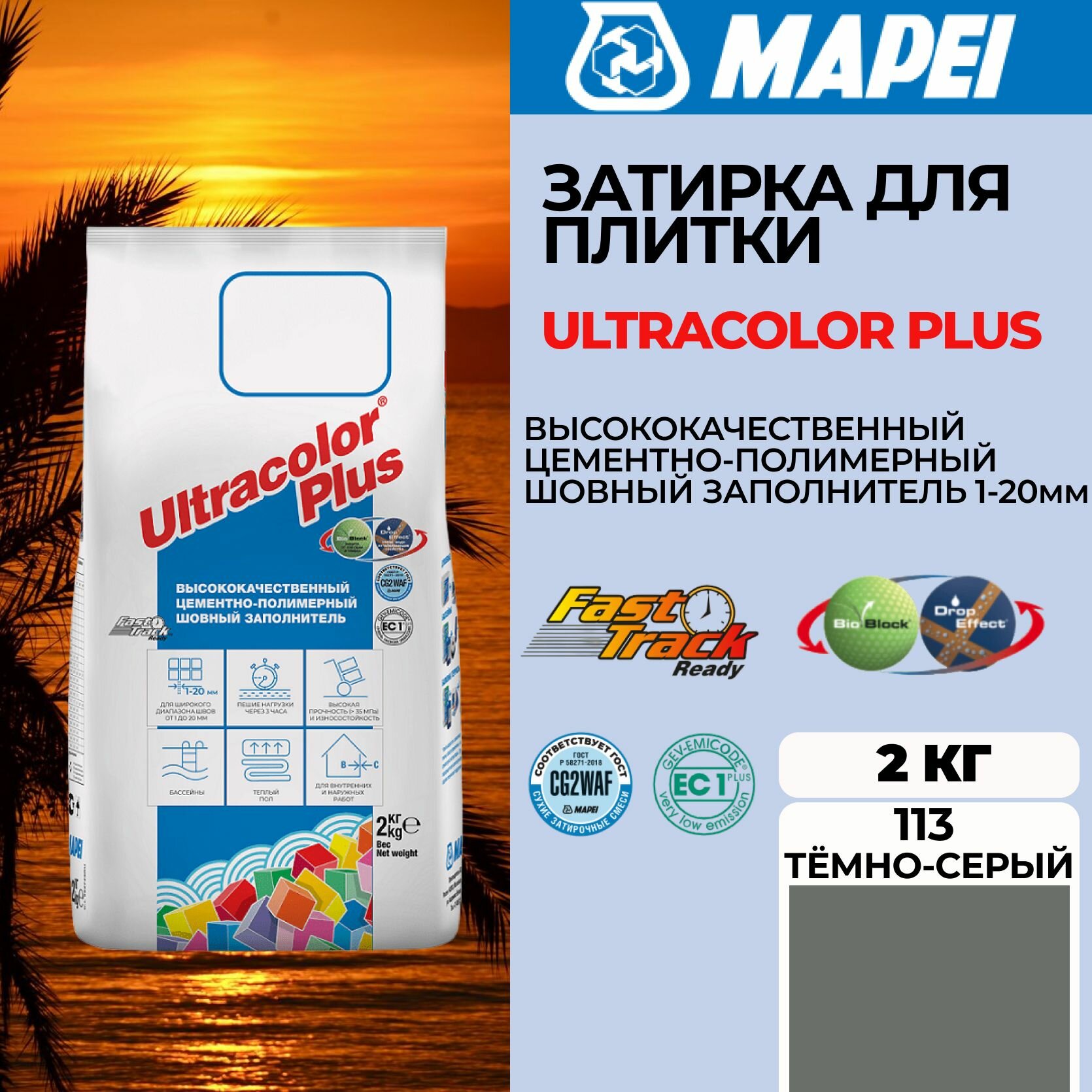 Купить Затирка Mapei Ultracolor Plus 113 Тёмно-серый, 2 кг