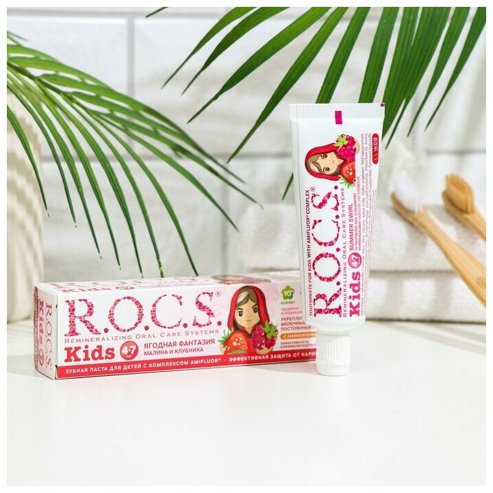 Зубная паста R.O.C.S. Kids Ягодная фантазия 4-7 лет, 35 мл, 45 г, розовый