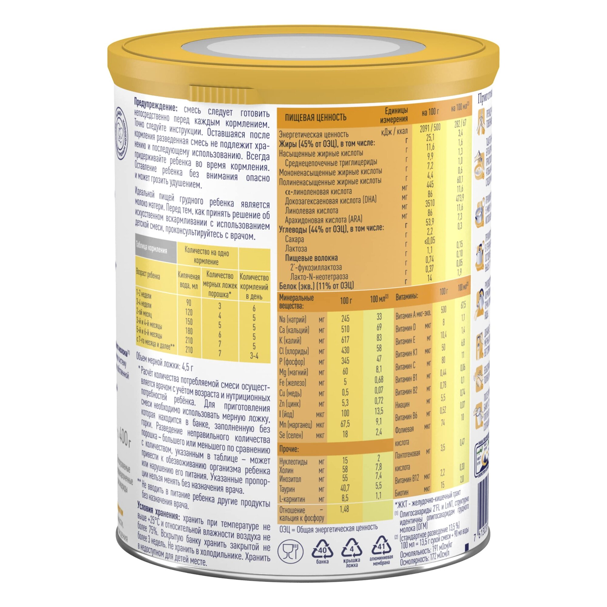 Смесь подошла по всем критериям, проблем с разведением нет. Очень удобный отсек для мерной ложки. |