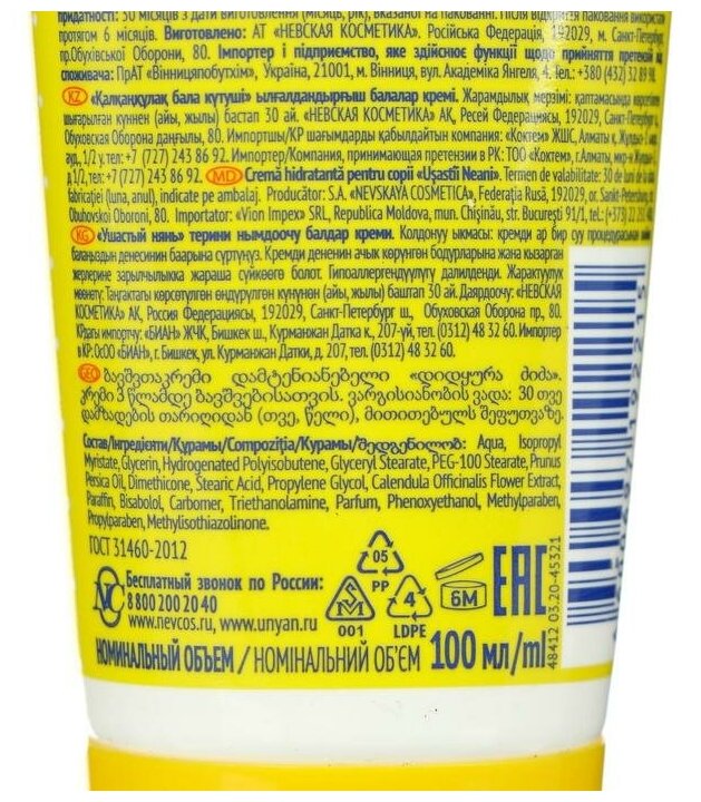 Ушастый Нянь Крем детский увлажняющий, 100 мл, 100 г