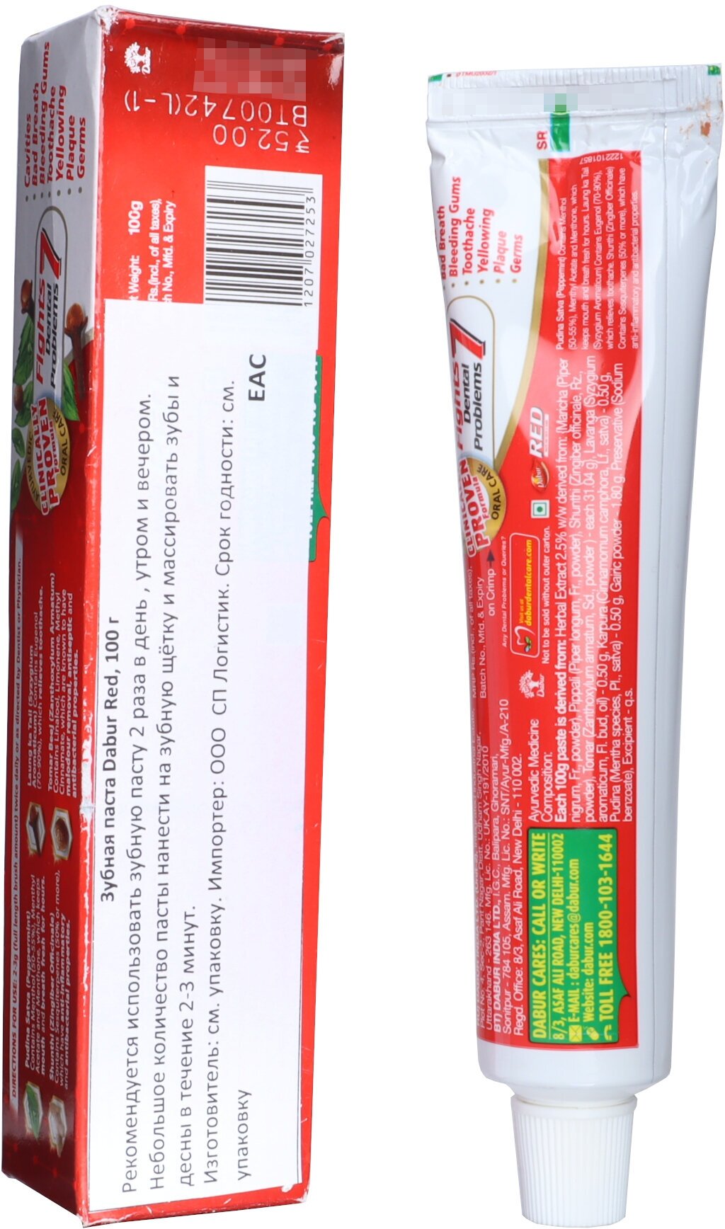 Зубная паста DABUR Красная, 100 г, 1 шт.