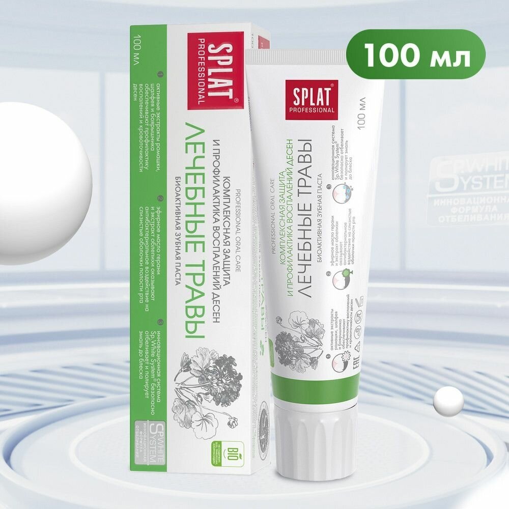 SPLAT Professional Лечебные травы Биоактивная зубная паста для комплексной защиты и профилактики воспалений десен 100 мл