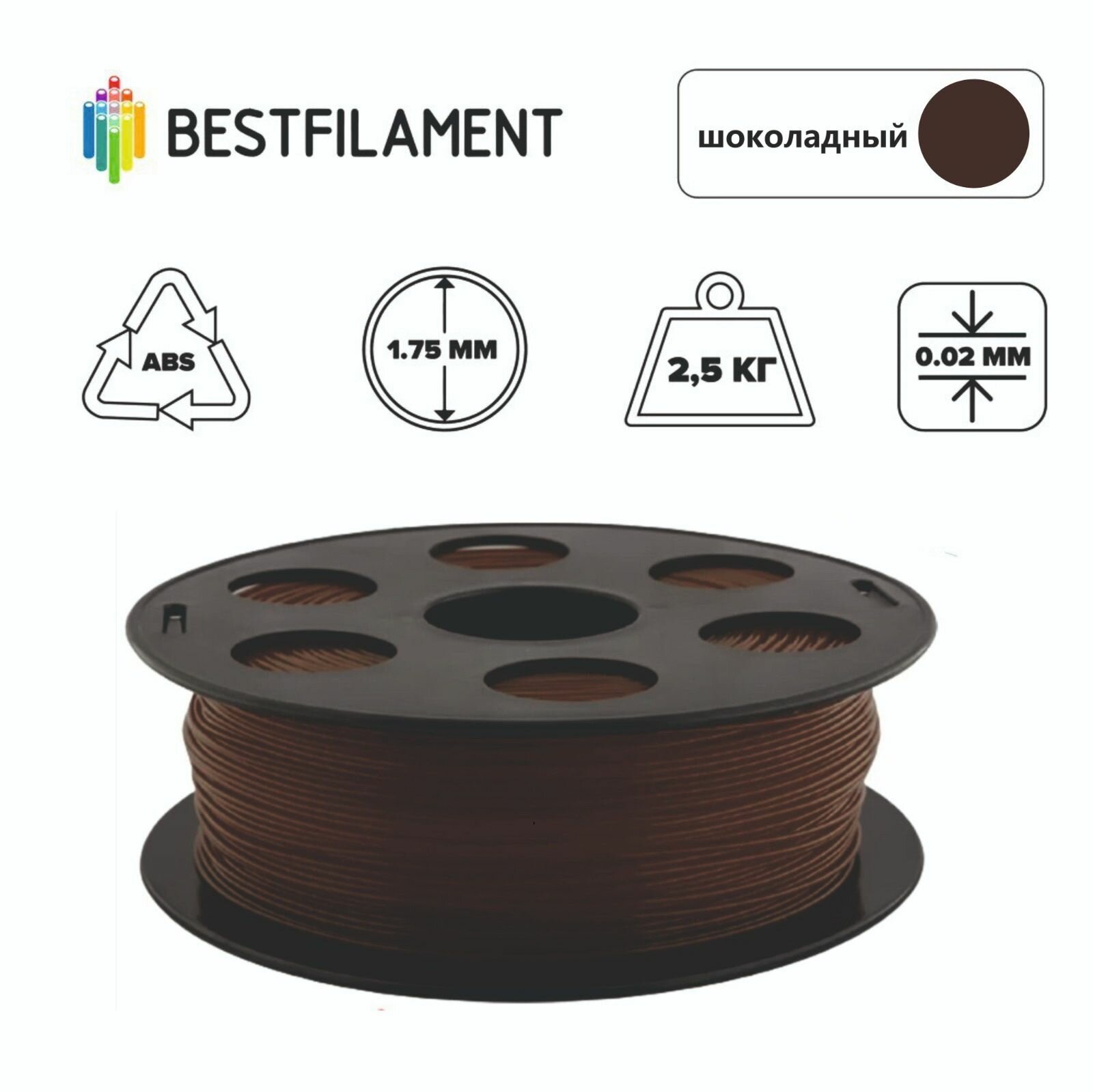 Пластик для 3d принтера ABS шоколадный 1,75 мм BestFilament, 2,5 кг