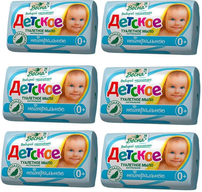 Мыло туалетное 90 г детское (Весна), нейтральное, без отдушек и красителей, 6 шт.