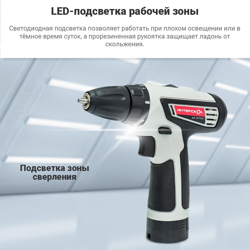 Дрель аккумуляторная ИНТЕРСКОЛ ДА-10/12Л2 (Li-Ion) интересное: