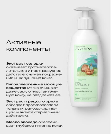 Гель моющий для лица и тела ЛА-КРИ, бережное очищение и восстановление кожи взрослых и детей, 200 мл