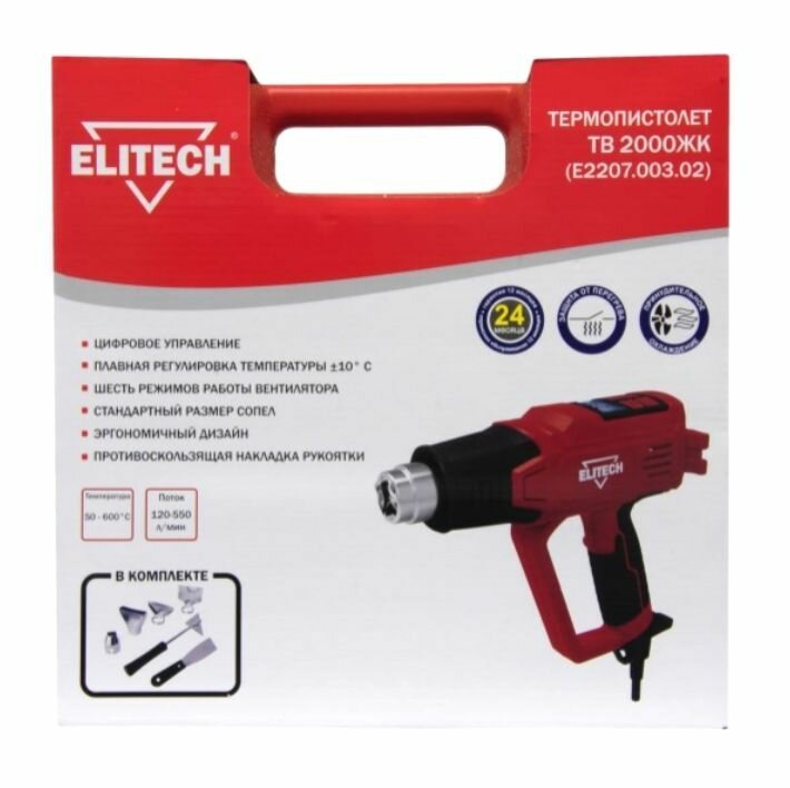 Купить Строительный фен ELITECH ТВ 2000ЖК Case, 2000 Вт красный
