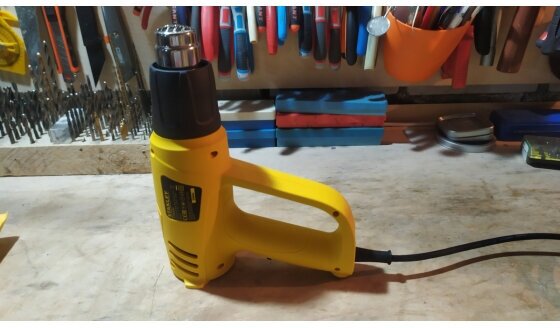 | Отзыв: | Выставлять температуру крутилкой тот еще квест, никаких шагов, щелчков. Разметил начало и конец хода маляркой, посчитал сколько рисок в этом ходу и сколько меняет температуру каждая из них. Отметил маляркой где 140 градусов, выставил, угадал - термоусадка усела, зафиксировал.