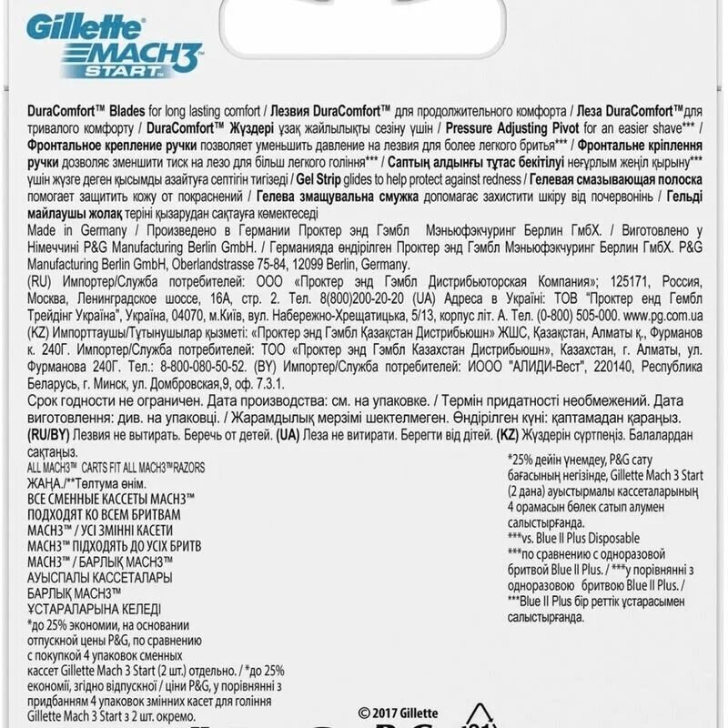 Гелевая полоска стирается достаточно быстро, кассеты приходится менять часто. Упаковка на 4 штуки всегда выгоднее по цене, чем на 2 штуки. Сменные кассеты подходят к любым бритвам серии Mach3 и некоторым бритвам Venus. |