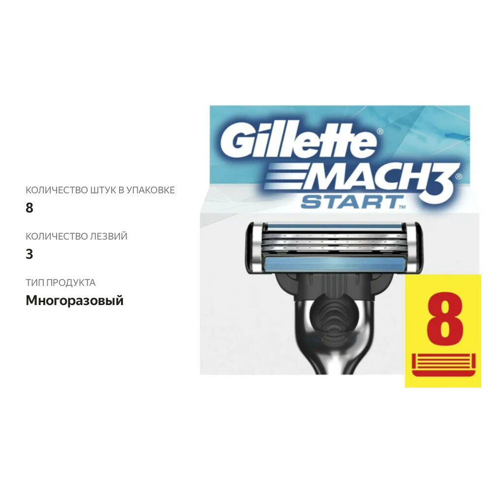 Джилет Мак3 Старт / Gillette Mach3 Start - Сменные кассеты для бритья 8 шт