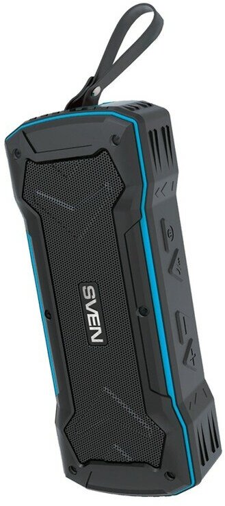 Портативная акустика 2.0 Sven PS-220 SV-016470 черная-синяя, 2x5Вт (RMS), FM-тюнер, USB, microSD, Bluetooth, Wateproof (IPx5), встроенный аккумулятор