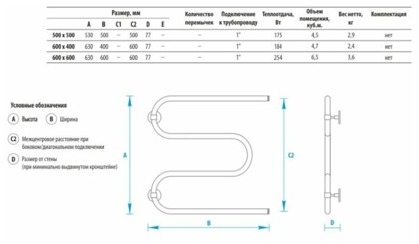 RAVAK Полотенцесушитель водяной Ravak Cube 500x1000 X04000083669