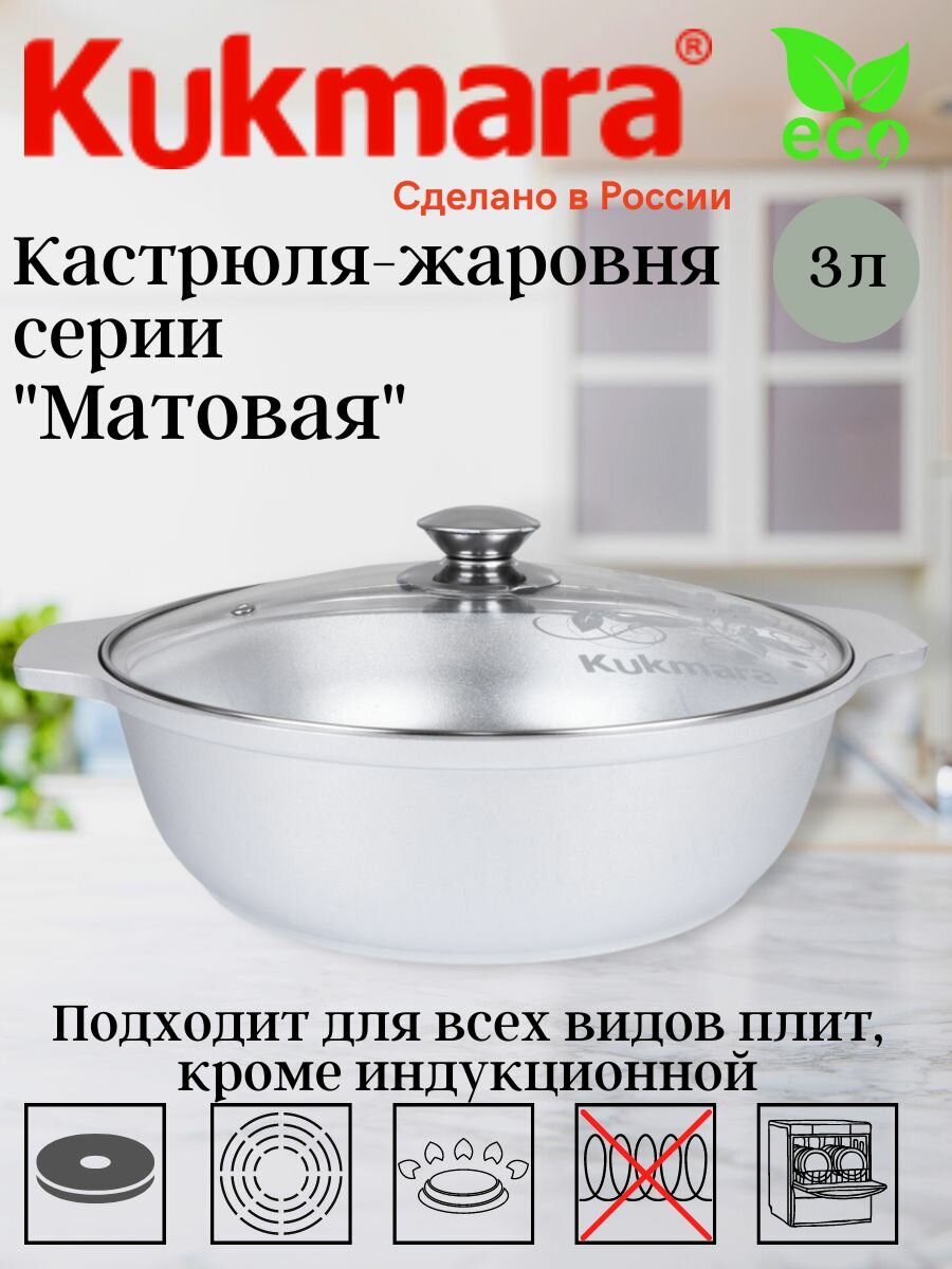 Ниже Вы можете прочитать отзывы на Кастрюля-жаровня KUKMARA ж34, серый, крышка стекло, ознакомится с подробными характеристиками, посмотреть интересные обзоры и фотографии на Кастрюля-жаровня KUKMARA ж34, серый, крышка стекло.