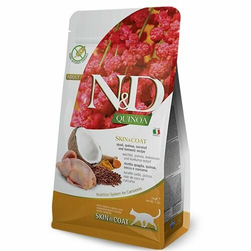 Фармина 35837 N&D QUINOA Skin&Coat корм беззерновой для кошек для здоровья кожи и шерсти Перепел с Киноа 1,5кг