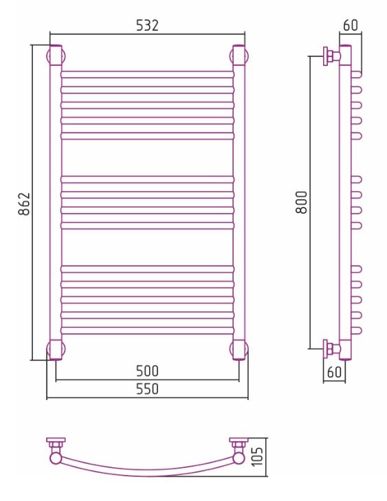 Водяной полотенцесушитель Aquanet Mauro(г2) 800x500