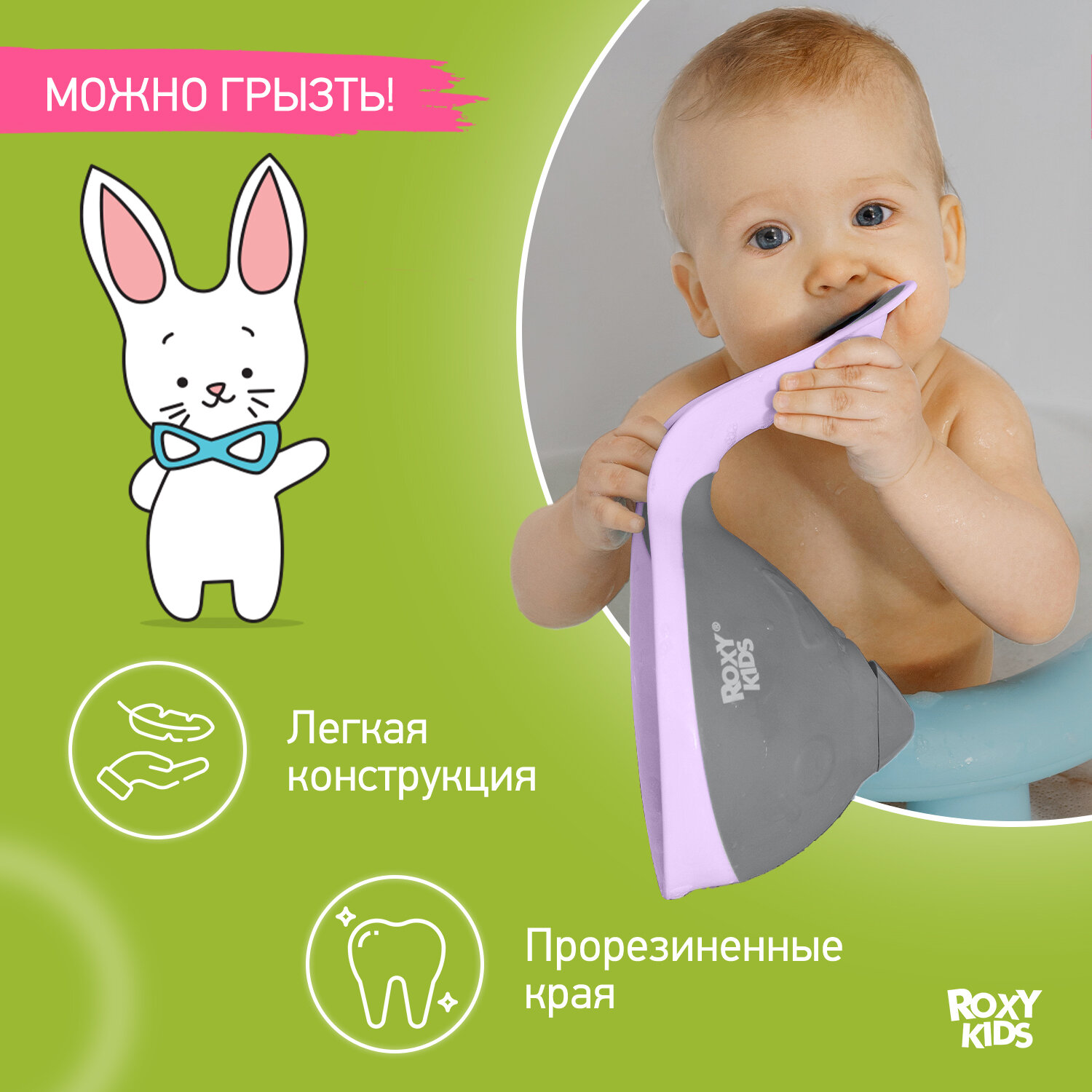 | Плюсы: | Яркий, силиконовые края, удобная ручка, можно использовать как игрушку |