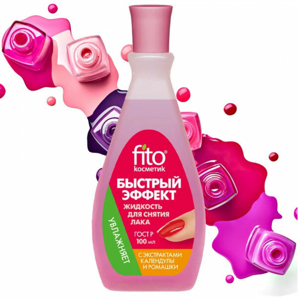 Fito Косметик Жидкость для снятия лака Быстрый эффект с экстрактами календулы и ромашки, 100 мл