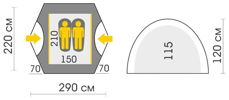 | Ширина внутренней палатки | 210 см |