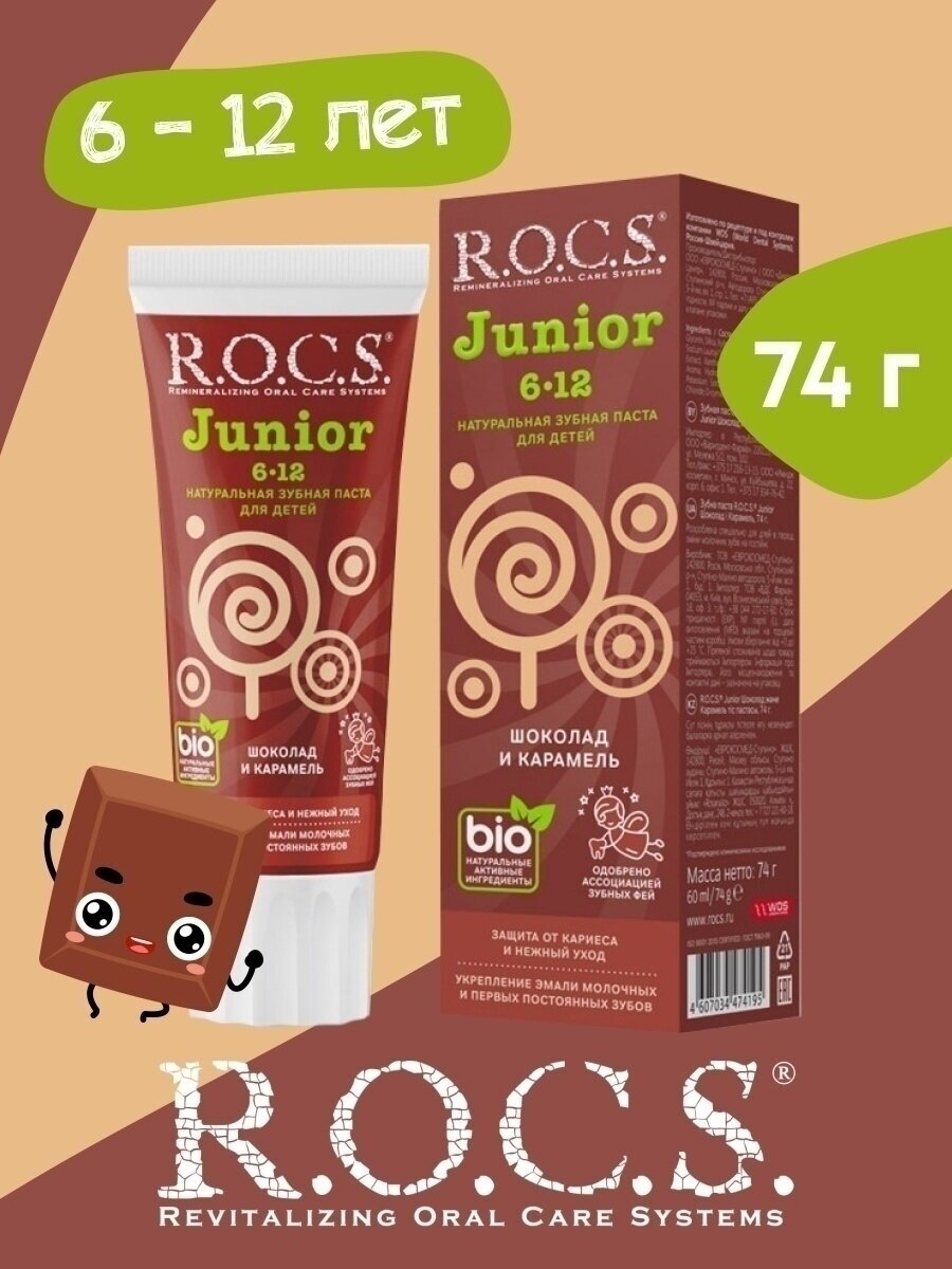 R.O.C.S. Зубная паста R.O.C.S. Junior, «Шоколад и карамель», 6-12 лет, 74 г