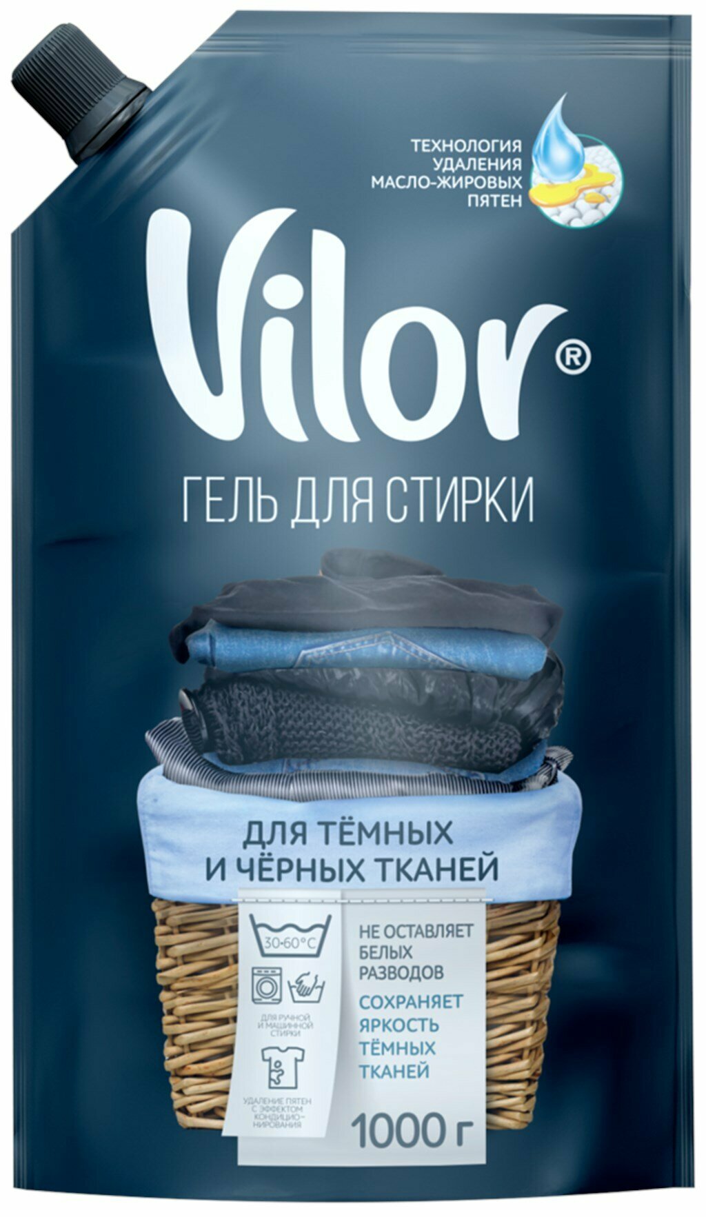 Гель для стирки Vilor для чёрных и тёмных тканей, 1 л, пакет
