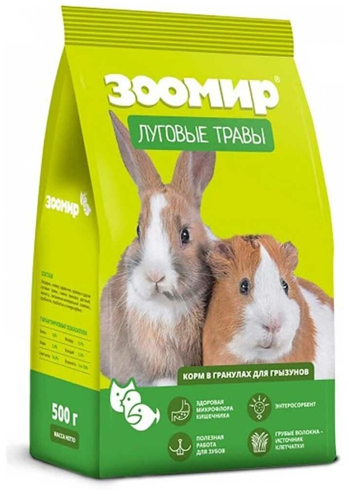 Корм зоомир Луговые травы для кроликов и грызунов, гранулы, 500 г