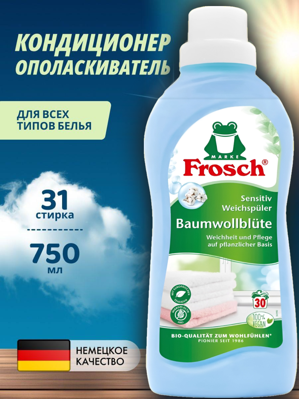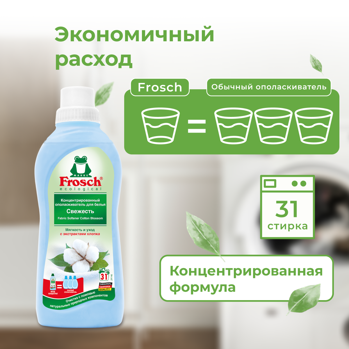 Кондиционер-ополаскиватель для белья Frosch фрош Свежесть (Цветы хлопка), концентрированный, 750 мл