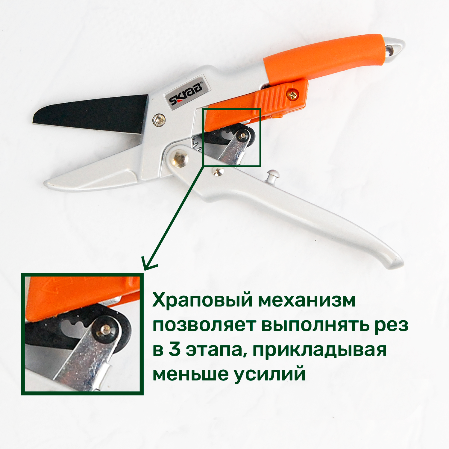 Сучкорез секатор контактный 205 мм SK 5 прямой храповый Skrab 28000