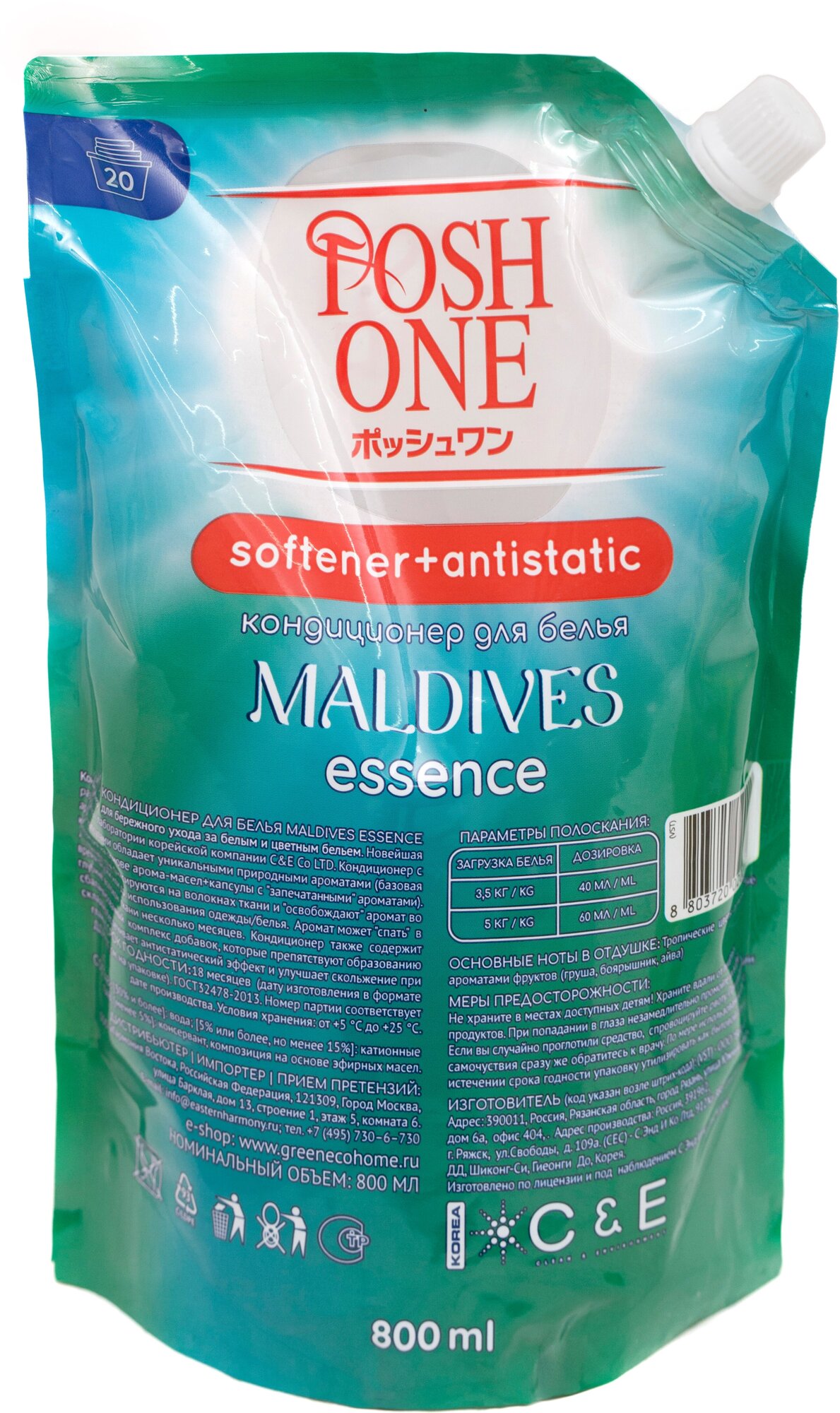 Кондиционер для белья Poshone "Maldives Essence", дой-пак, 800 мл
