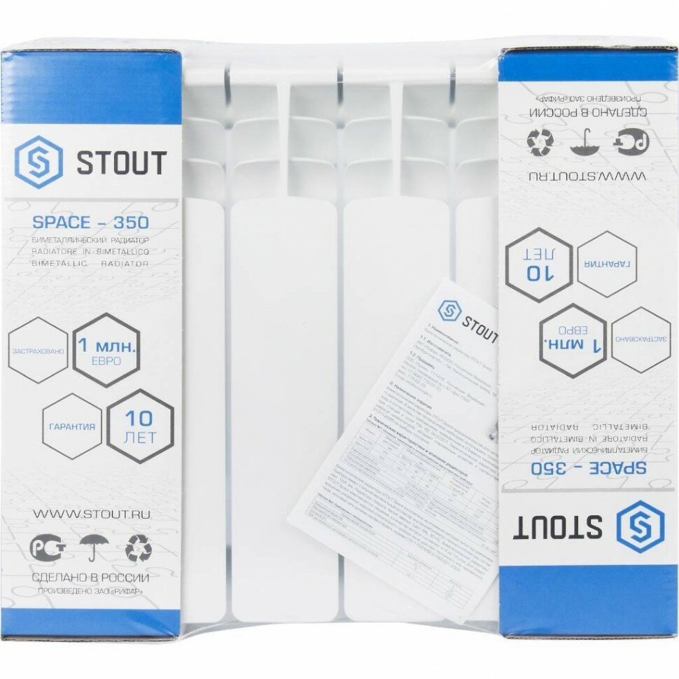 STOUT Space 350 Радиатор секционный биметаллический 10 секций боковое подключение боковое 1 дюйм