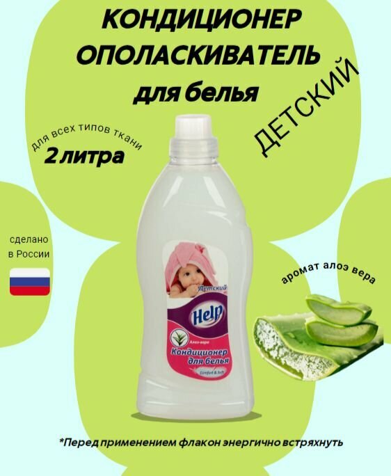Купить Кондиционер для белья Help / Хелп Детский Алоэ-вера для всех типов тканей жидкость 2л / ополаскиватель для стирки