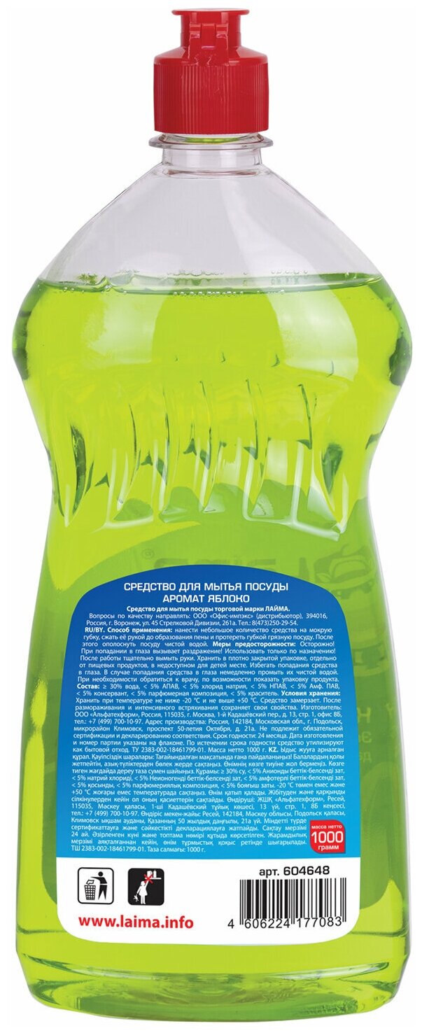Средство для мытья посуды 1 кг, LAIMA PROFESSIONAL, концентрат, "Яблоко", 604648 (арт. 604648)
